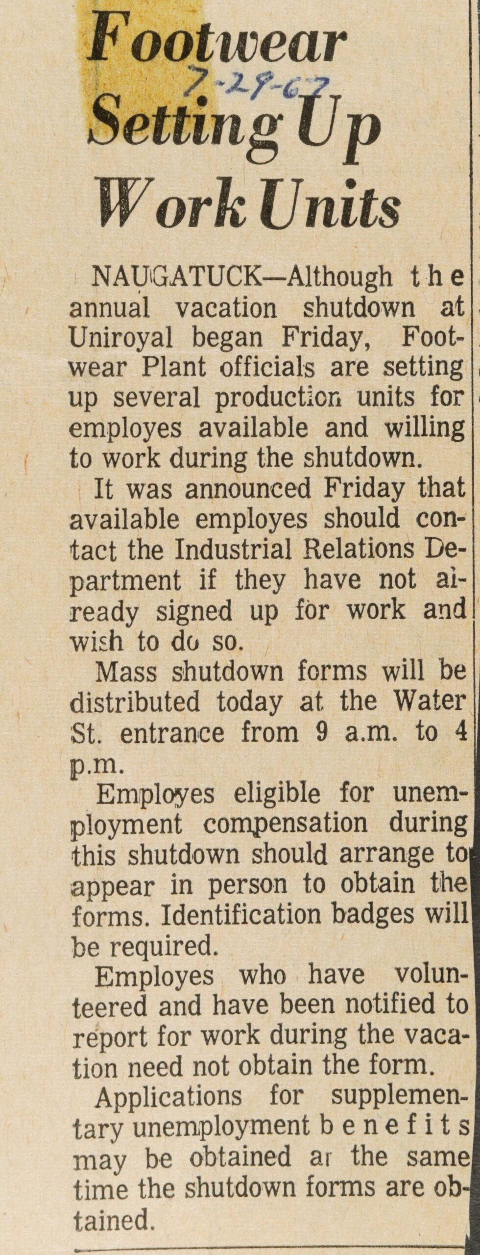 Uniroyal Strike Affects Beacon Falls Area Economy