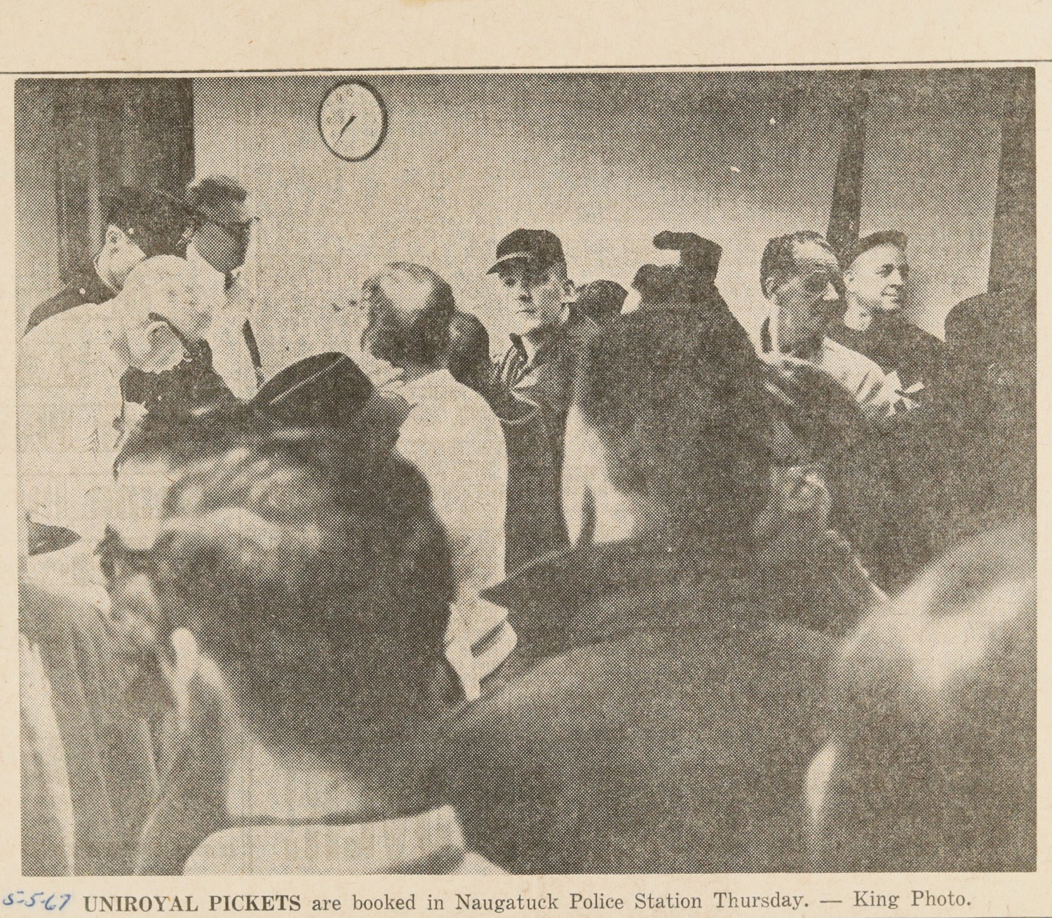 The arrested men, all members of the United Rubber Workers Union, AFL-CIO, were released without bond and will appear in the Waterbury Circuit Court, June 8.