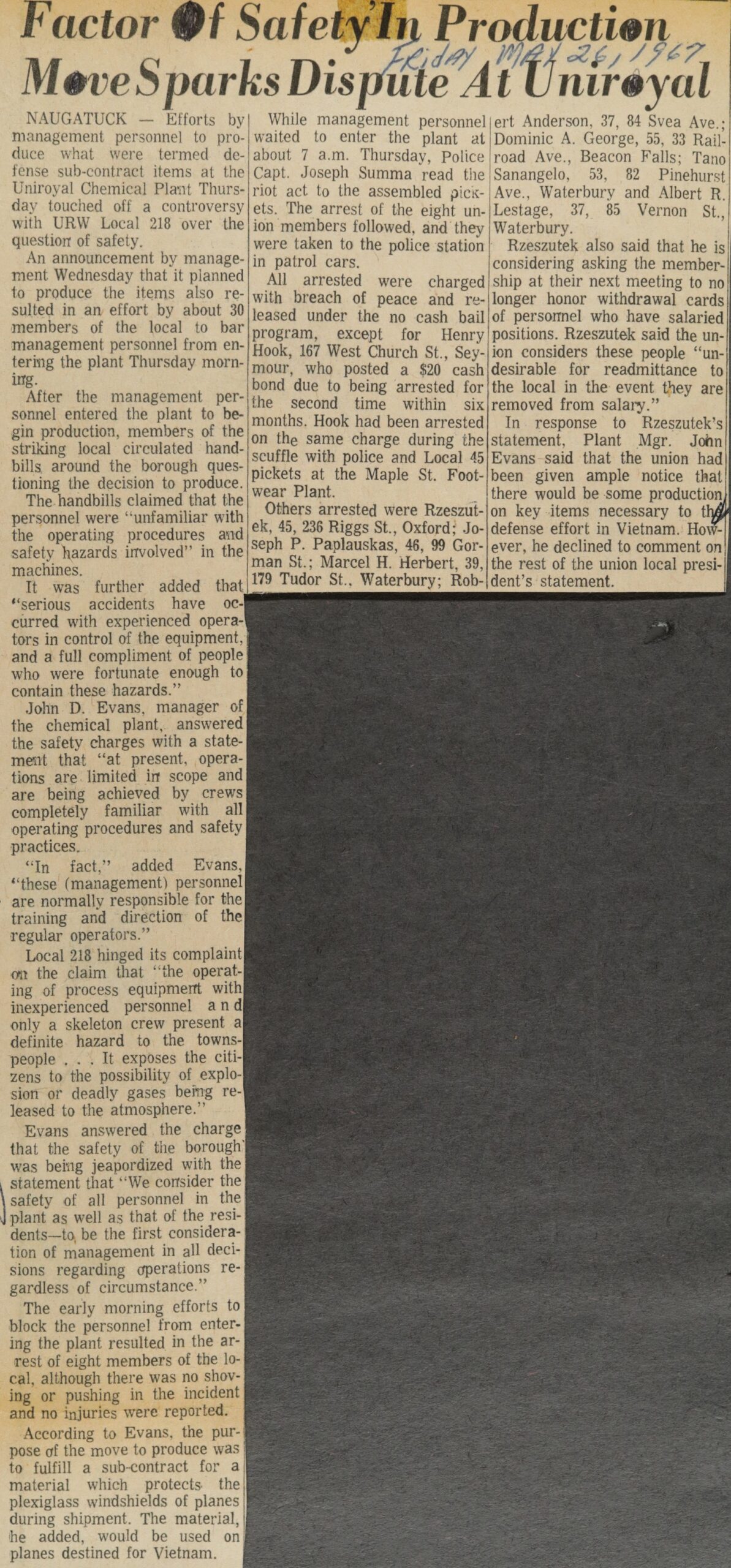 NAUGATUCK—Among those arrested by the Naugatuck Police during the near riot Thursday at the gates of the Footwear Division, Uniroyal, were: