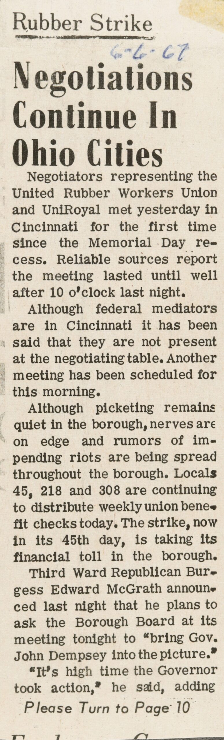 Third Ward Republican Burgess Edward McGrath had appealed to Gov. John Dempsey to help in the negotiations; however, the Borough Board was informed that he was watching the situation. No concrete action in mediation was mentioned in his communication.
