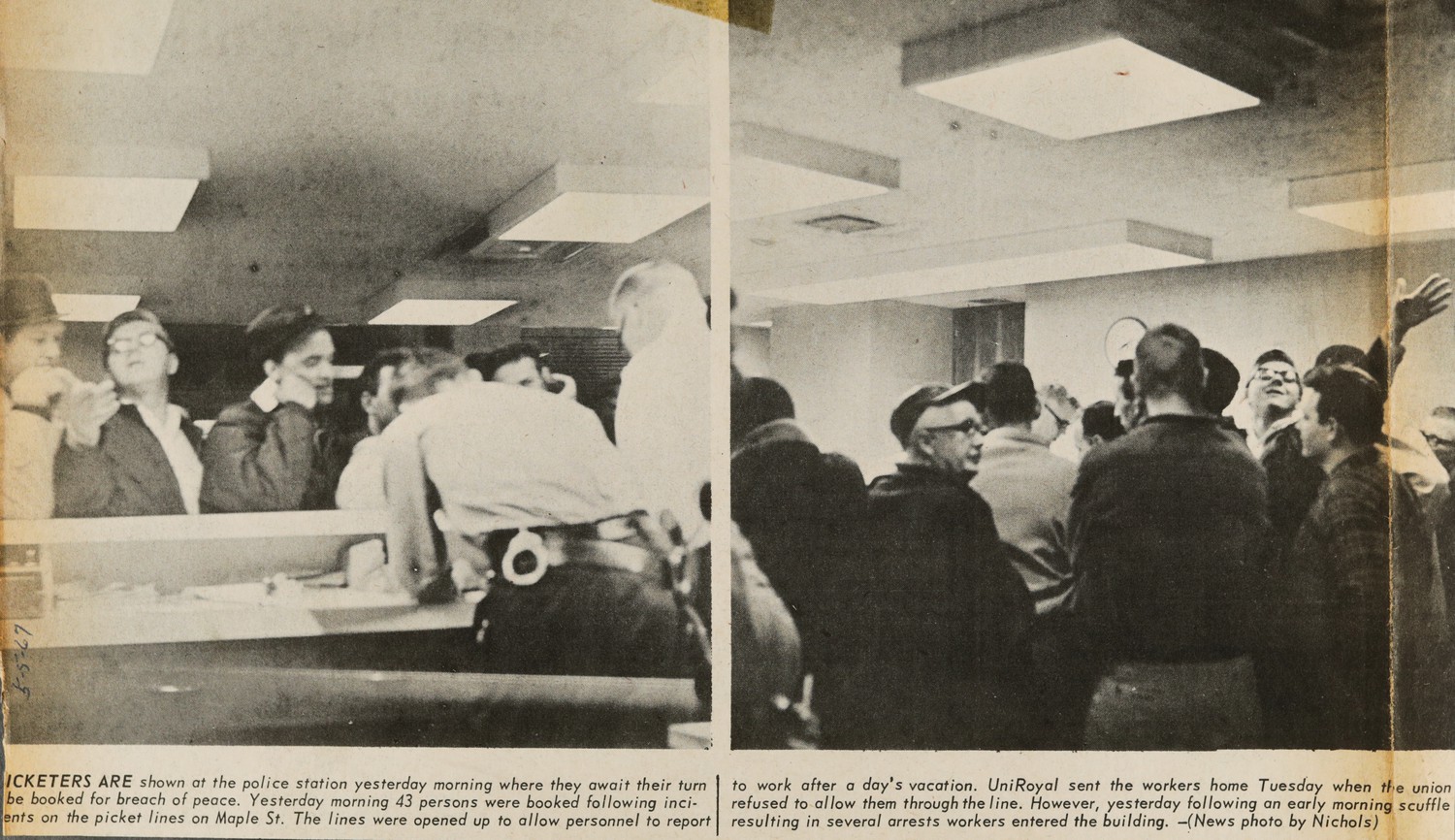 A score of pickets at the plant carried signs saying,”Must we stand alone?” and “Local 532 on strike.”