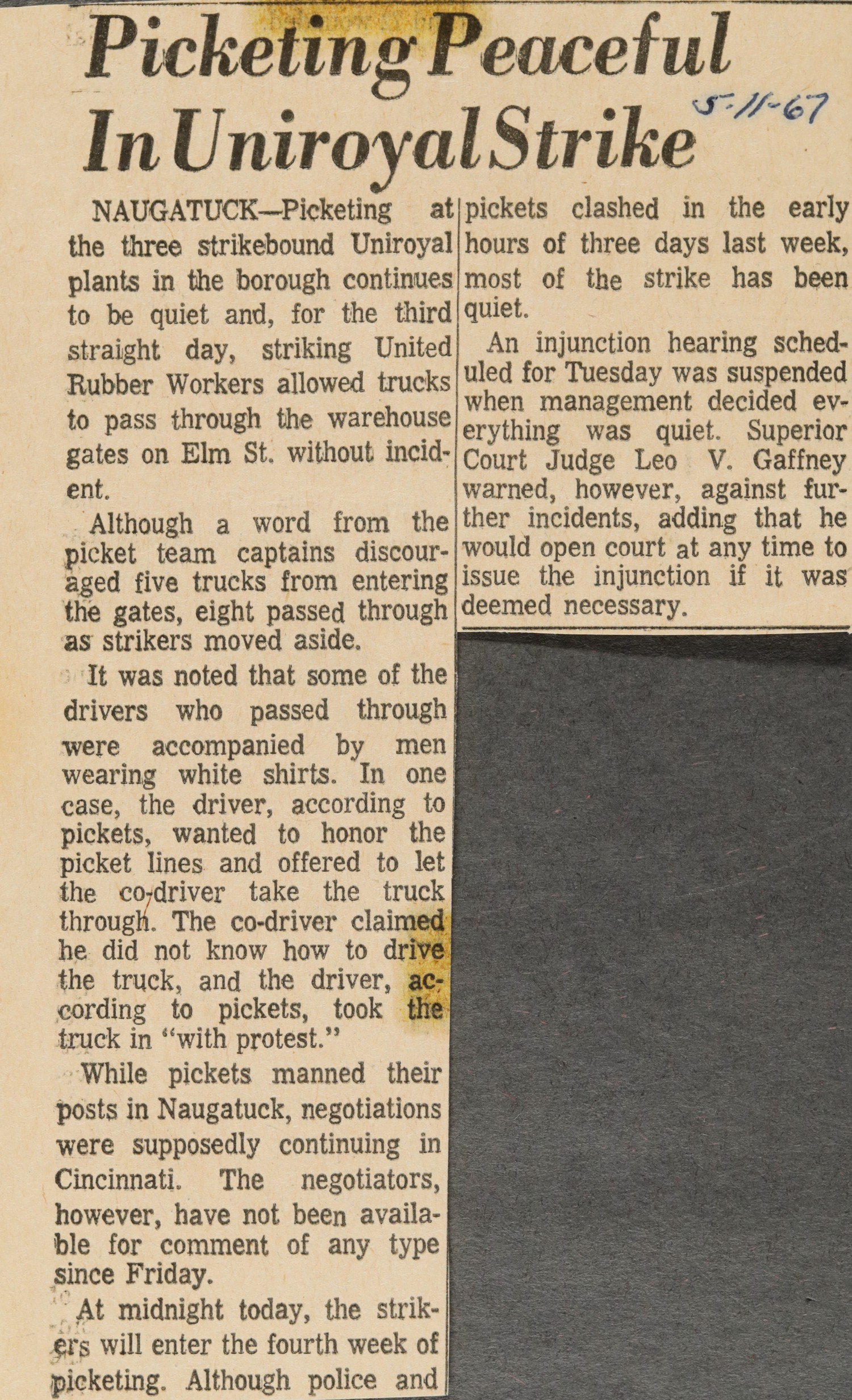 Although talks are reportedly still in progress between Goodyear and the URW, some 500 members of Local 532 walked out at Goodyear’s industrial hose plant in North Chicago. Local leaders said they would try to urge other Goodyear locals to follow suit.