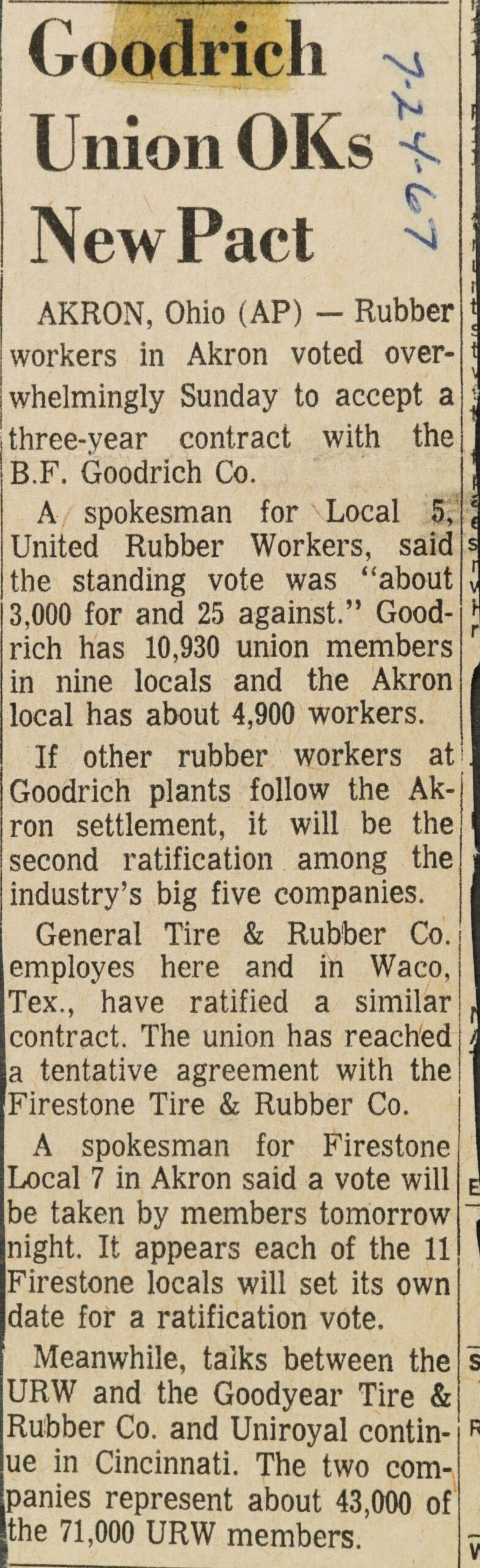 General Tire & Rubber Co. was struck June 21. Work has continued at the Goodyear Tire & Rubber Co. on a day-to-day basis.