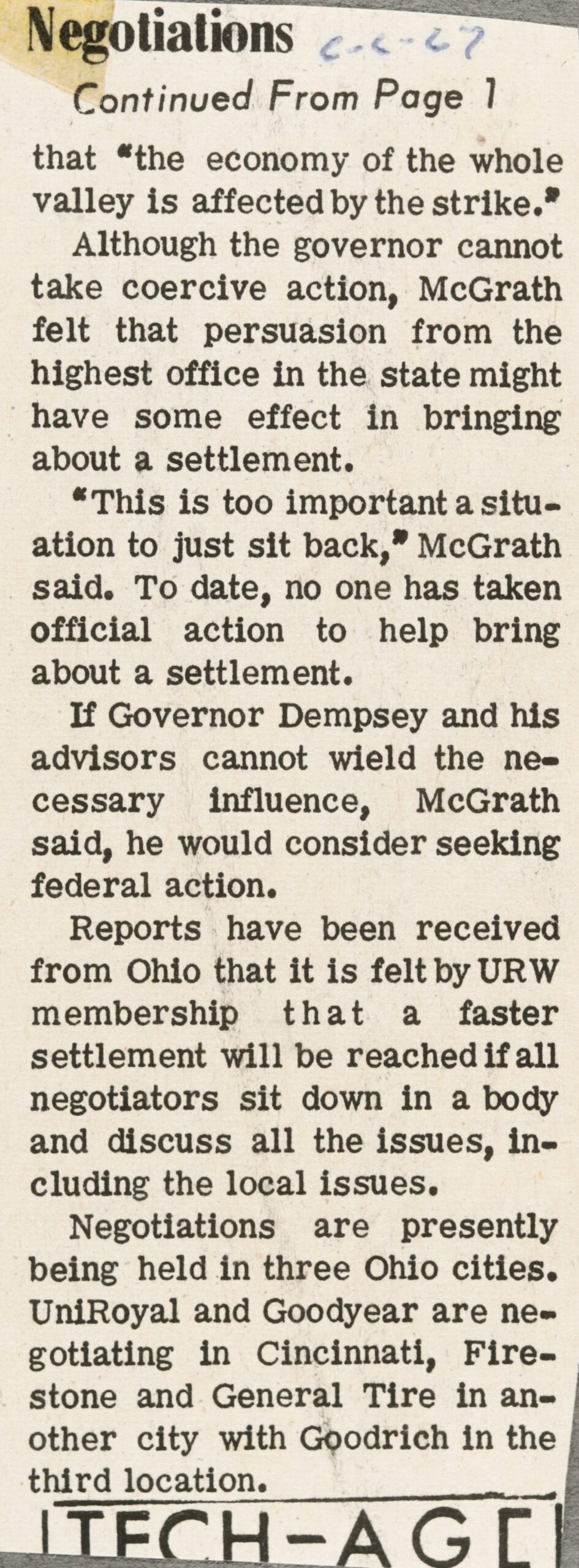 Meanwhile, in Cincinnati negotiations are continuing in the nationwide strike that has idled about 50,000 United Rubber workers, including those in Naugatuck and Beacon Falls.