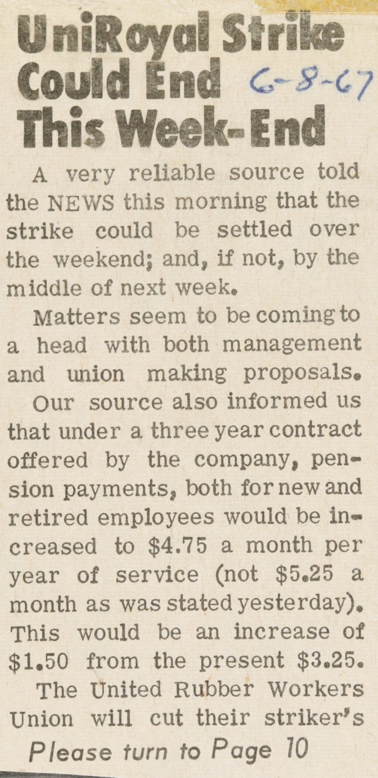 Under the new proposal, the companies would lift pension payments, both for new and present retirees, to $5.25 month for each year of service, an increase of $2 from the present $3.25. Improvements are also included for insurance and vacations as well as broader pay-boost differentials for skilled tradesmen—workers who perform maintenance tasks on rubber goods-production equipment. This had been a key issue in the URW contract demands.