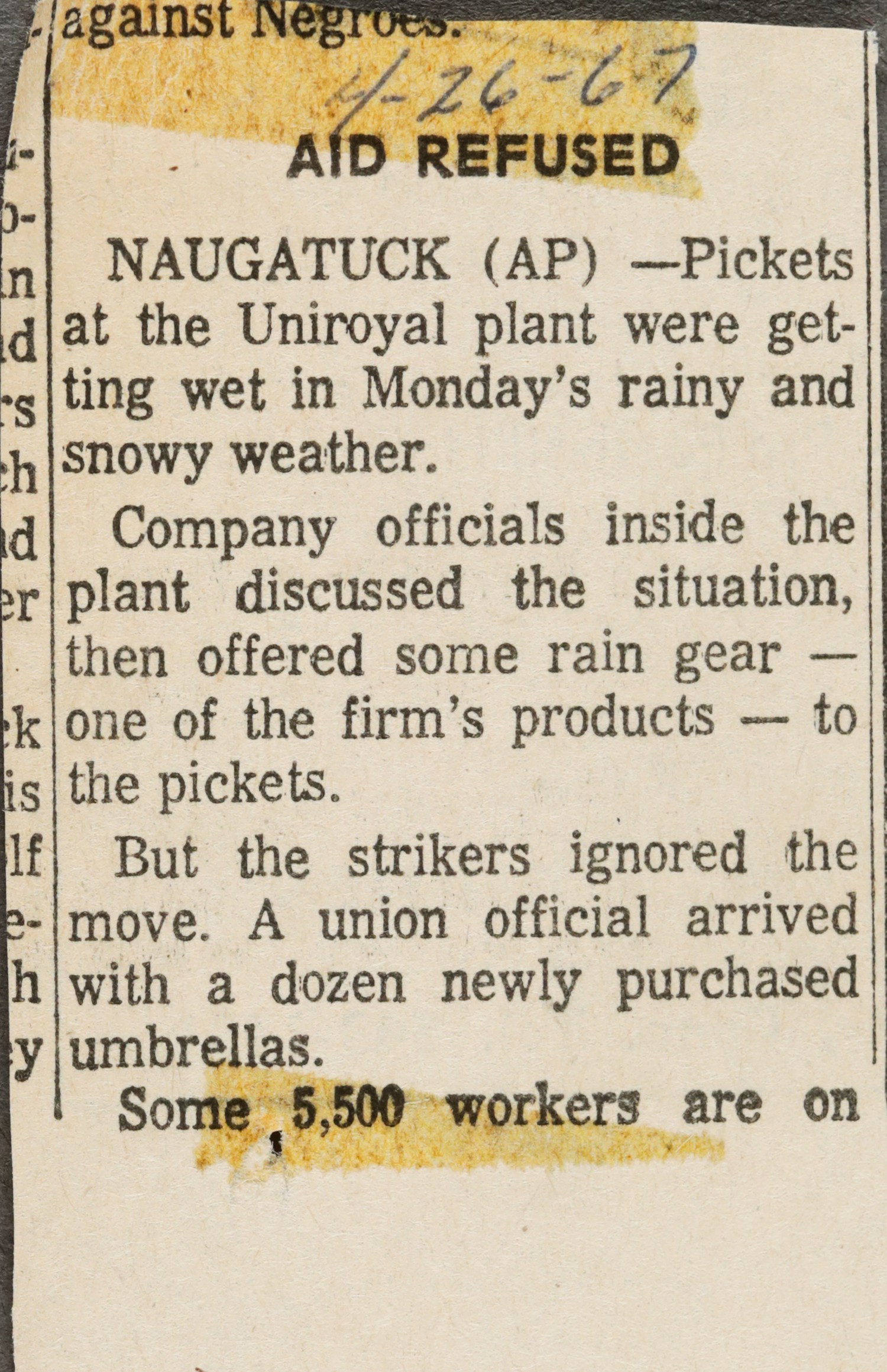 aid during the strike at the