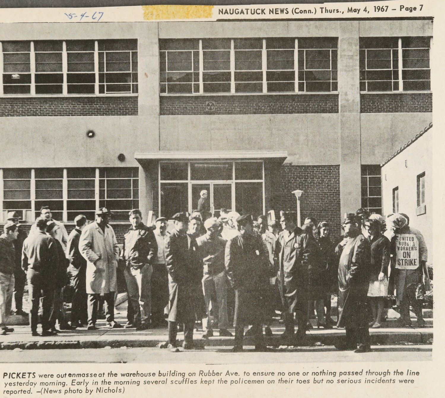 Pickets at Naugatuck and Beacon Falls had been ordered by Raymond Mangacci, a union vice president, to avoid violence.