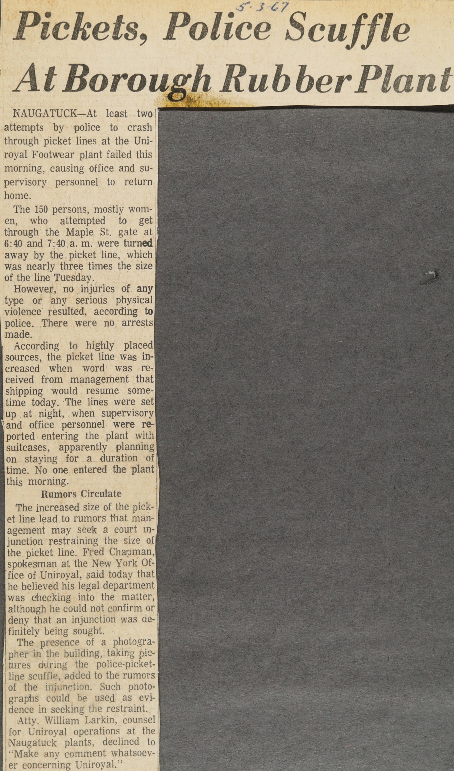 Atty. William Larkin, counsel for Uniroyal operations at the Naugatuck plants, declined to “Make any comment whatsoever concerning Uniroyal.”